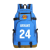Рюкзак выполнен в различных оттенках голубого, с контрастными черными элементами, включая номер 24.